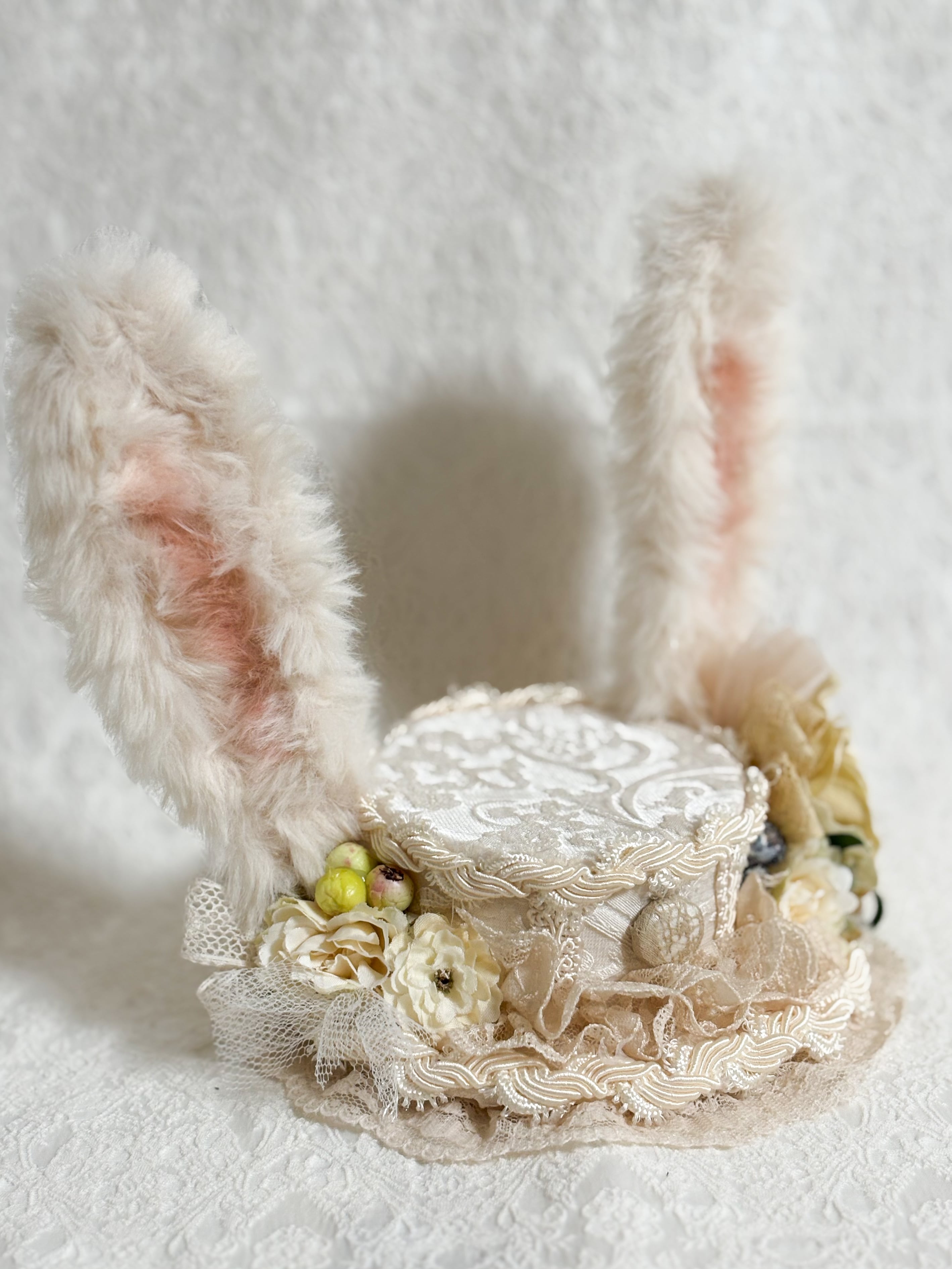 ストライプ柄のウサ耳ハットから派生したホワイトシリーズです。