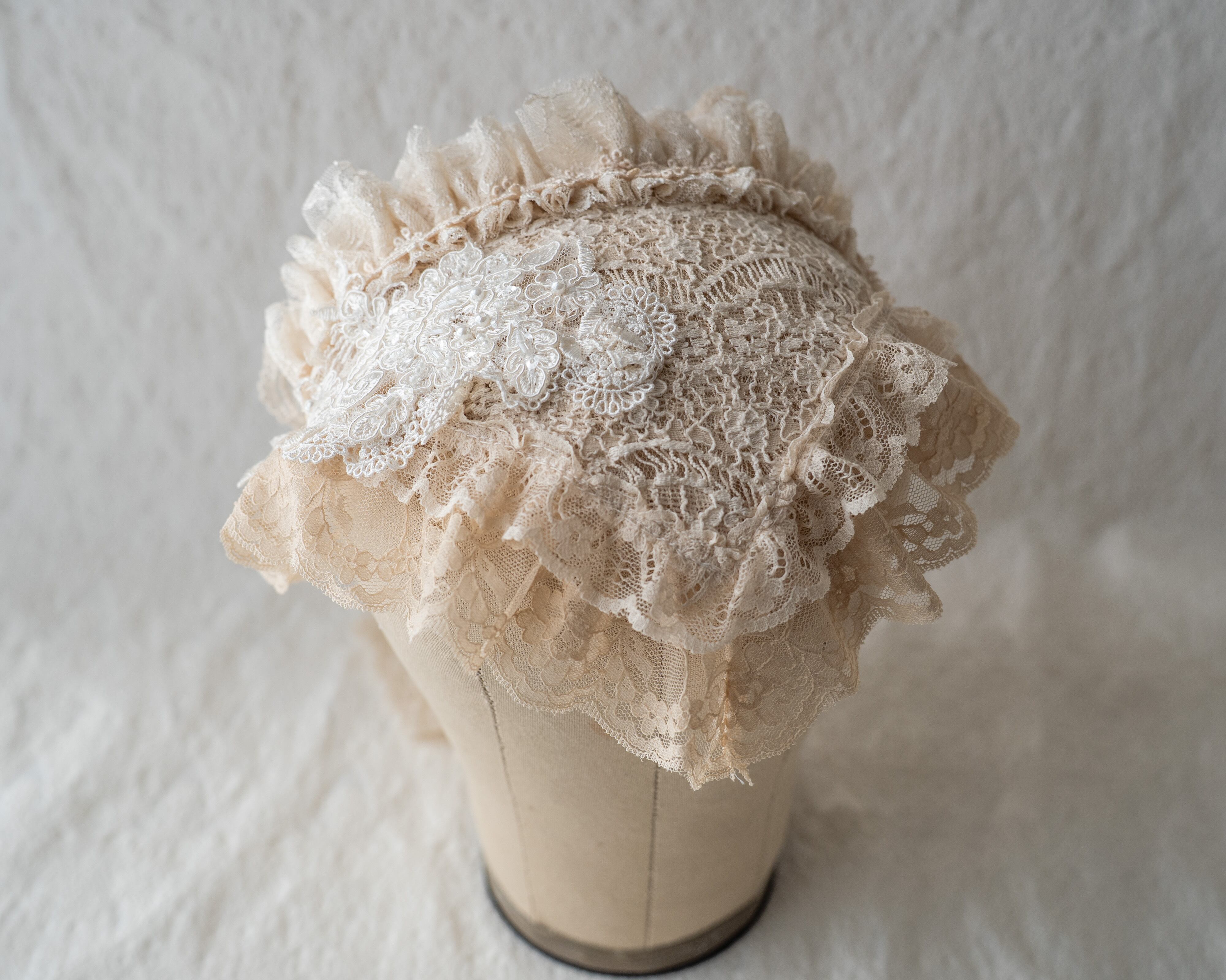 ・ハンドメイド一点物になります。手縫いの部分も多くありますので、ご理解頂ける方のみご購入下さい。デリケートな素材のため、強く引っ張ることはお控えください。